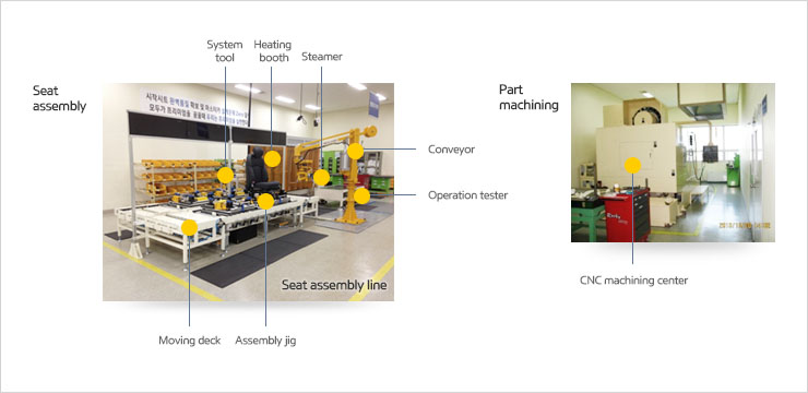 Fully reflecting design drawings into the manufacturing of parts, HYUNDAI MSEAT clears problems generated during the development phase through their assembly conformity and feature verification and shares various feedbacks on their design in order to improve the completeness of all drawings.